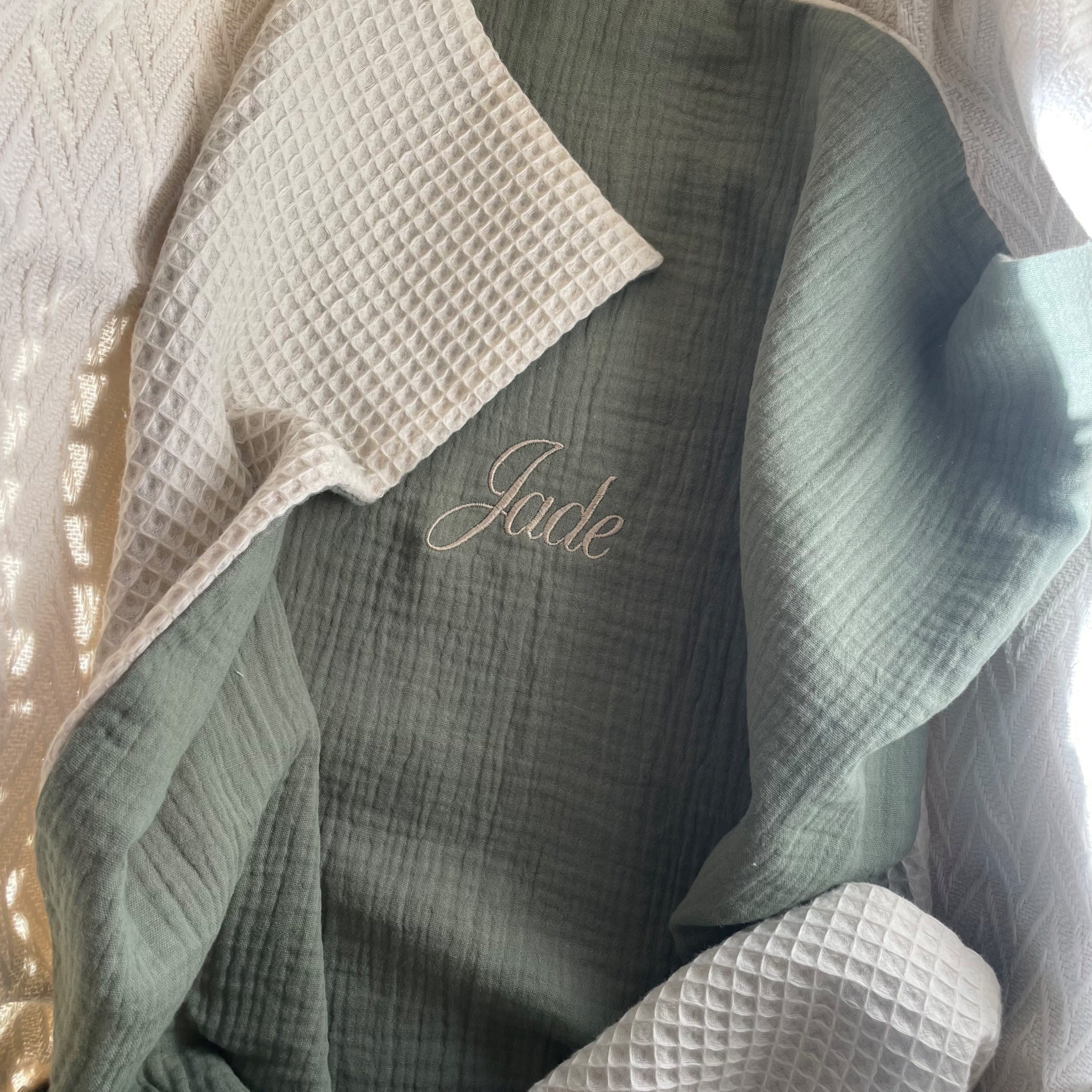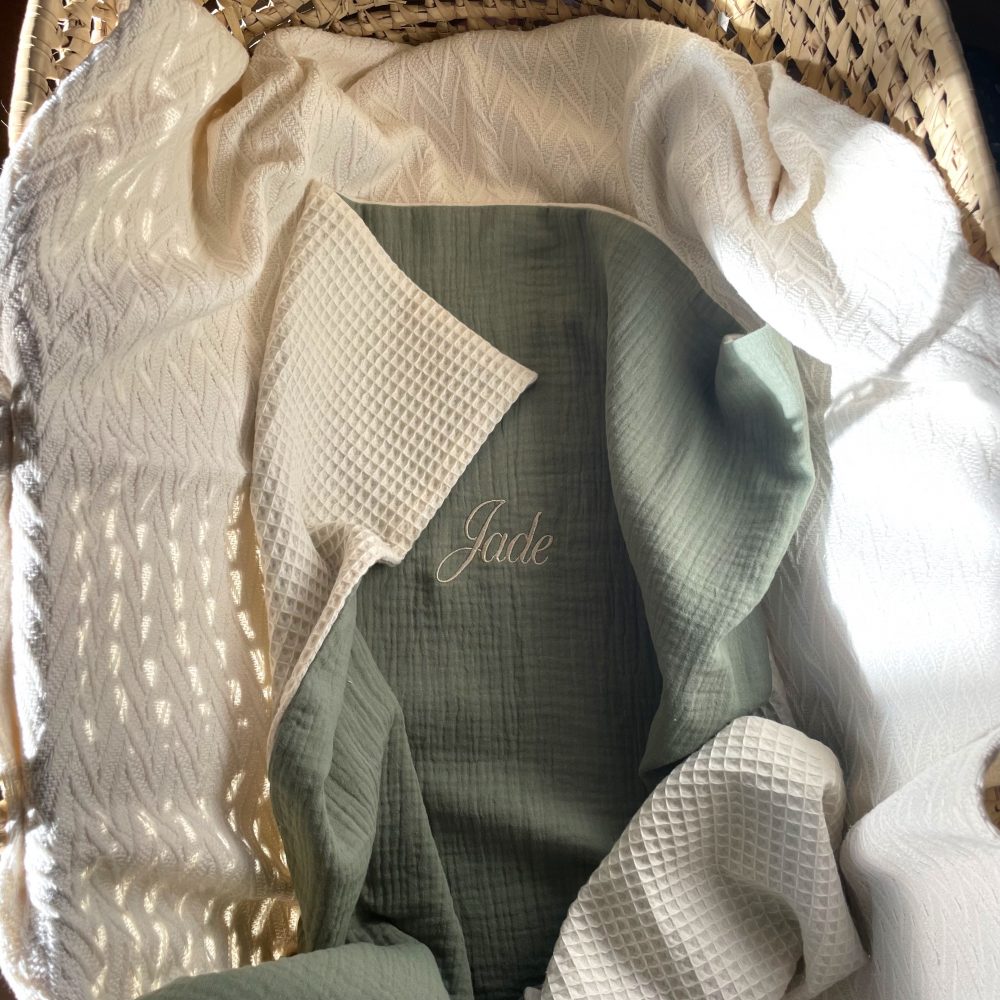 Découvrez notre couverture bébé personnalisable. Grâce au nid d’abeille et au gaze de coton, elle offrira à votre petit trésor une douceur inégalée et une chaleur réconfortante. Idéale pour les moments de câlins, les siestes ou les promenades en poussette.