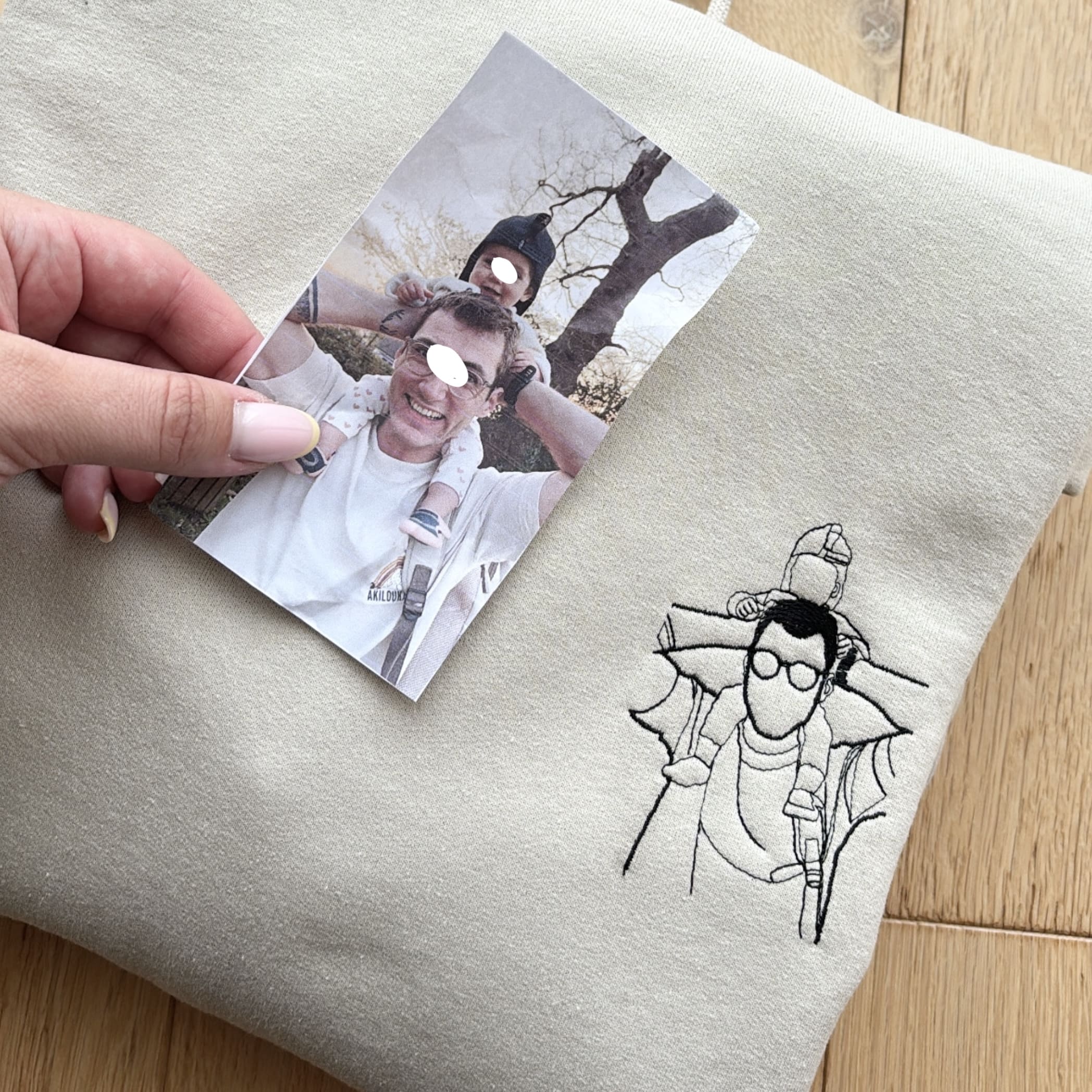 Transformez vos plus belles photos en broderie, directement sur un sweat confortable et stylé. Que ce soit un moment en famille, votre animal de compagnie, ou une photo de couple, chaque pièce devient une création unique, pleine d’émotion.